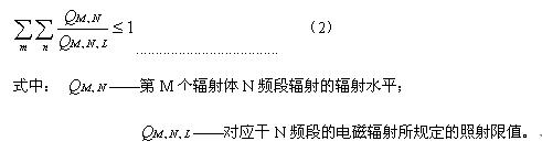 4.4.3 在對輻射水平進行評價時,應考慮到某一輻射體可能存在的幾種輻射頻率的貢獻以及多個輻射作的貢獻,即應滿足式(2):